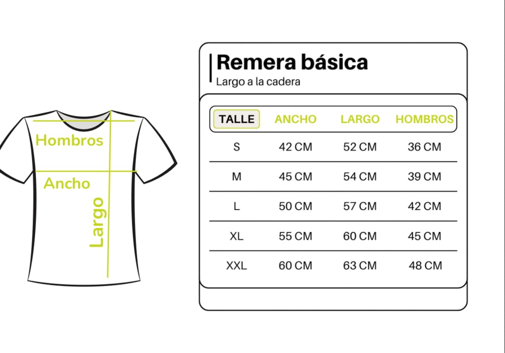Para saber tu talle te recomendamos medir una prenda del estilo como muestra la figura y comparar con la tabla: